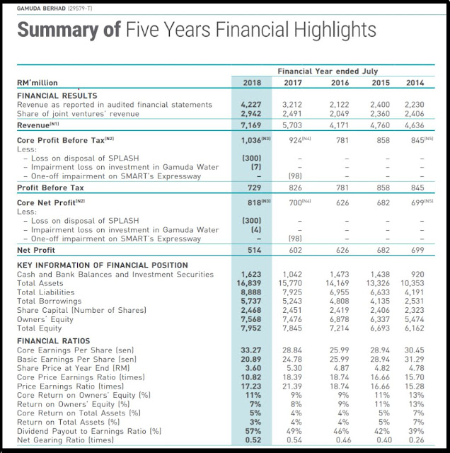 (1) 从阅读公司年报与季报,可以观察出 GAMUDA 是一家十分注重细节 与人才的企业。年报的资料比起其他建筑公司来得更加细节,完整 和透明化, 让股东对管理层和企业未来抱有一定的信心和期待。建 筑板块龙头这个称号归 GAMUDA 是实至名归的。